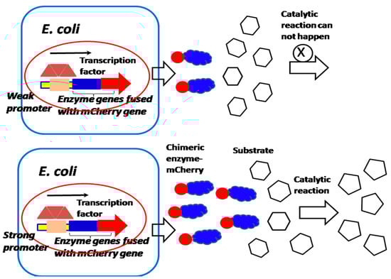 A performance-enhanced promoter is applied for studying the enzyme activity. High concentration of the enzyme will produce high catalytical activity, if the enzyme is not saturated by a substrate.