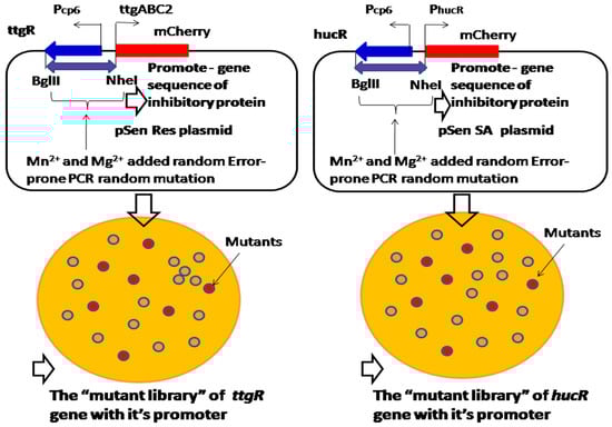 Mn2+ and Mg2+ added random error-prone PCR mutagenesis approach for randomly mutating the entire inhibitory protein gene with its promoter sequence, in order to construct the “mutant library” to screen the sensitivity of the biosensors.