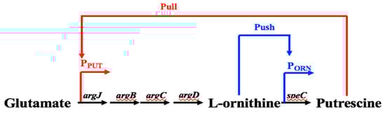 Construction of dynamic genetic circuit in “push” and “pull” mode to promote conversion of l-ornithine to putrescine.