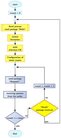 The data transmission phase is divided into rounds. Every round has a time slot of N-nodes, where N-nodes is the number of non-CH nodes in the network. During this period, the Sink/BS node sends a “Request” packet to the first CH node. Once the CH node receives this “Request” packet, it organizes a programmed transmission with the nodes in its cluster by using TDMA as access method. This process is repeated for all the clusters in the network.