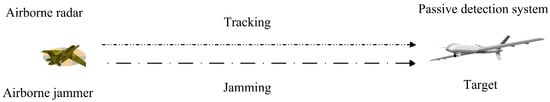 Combination of tracking and jamming at the target equipped advanced passive detection system.