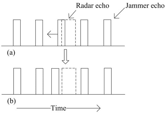 From Figure 2, the target tracking process would be interfered if the radar echo and jammer echo is overlapped showed in Figure 2a. Since that, the time synchronization performance is very important to separate radar echo and jammer echo showed in Figure 2b. Therefore, an interference model based on adaptive radiation power design is proposed, which can not only maintain the target tracking performance, but also jam PDS on target without considering the CFAR modes.