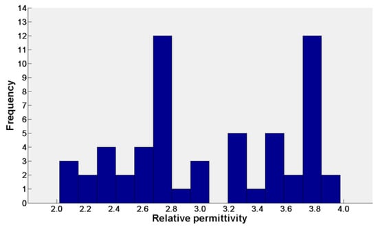 - A weight based on the amplitude of the measured echoes is set:where is the final estimated dielectric constant, is the number of the recovered permittivity values and is the ith recovered permittivity value. is ith amplitude.