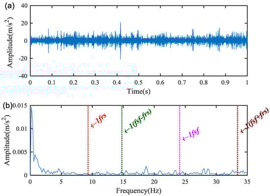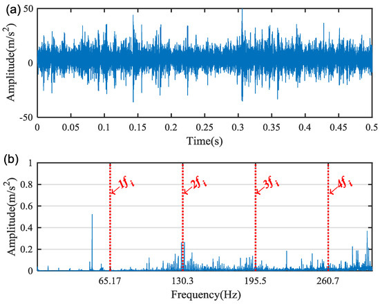 The raw vibration signal of the faulty bearing: (a) the waveform and (b) spectrum.
