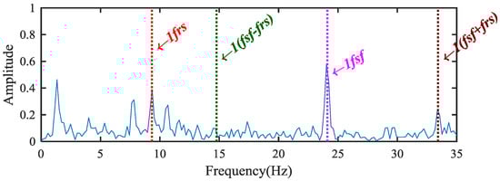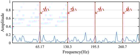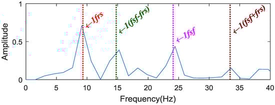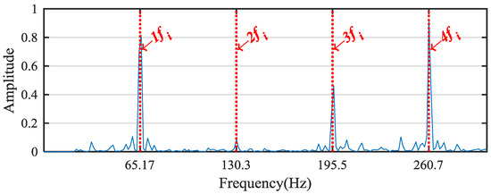 In order to solve the above problem, MSB is then applied to suppress the noise and decompose the modulated components. The normalized analysis results of vibration signal for the sun gear chipped based on the proposed method are shown in Figure 8: Some peaks correspond exactly to sun gear rotation frequency , sun gear characteristic frequency , and the combination . The result demonstrates that the proposed method can get more effective and accurate fault features than the envelope analysis for sun gear fault diagnosis.