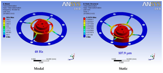 The modal and static structural analysis result of simulation software ANSYS (shape c).