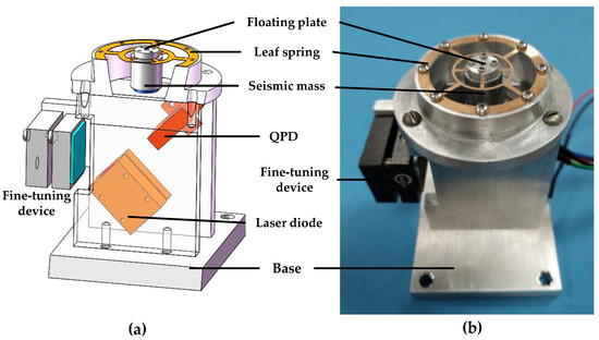 In summary, for the cost-effective and accurate measurement of low-frequency, low-amplitude vibration, a new optical accelerometer system is developed in this study. A centrally symmetric leaf spring fixed on a seismic mass was used as a vibration sensitive unit, four-quadrant photodetector (QPD) based optical sensor was used to sensor the seismic mass’s displacement. Section 2 introduces the structure and principles. Section 3 explains the design, analysis, and fabrication of the optical accelerometer. The performances of the optical accelerometer are discussed in Section 4. The summary and prospect of the optical accelerometer are presented in Section 5.