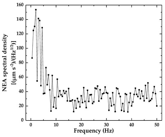 Noise equivalent acceleration (NEA) spectral density.