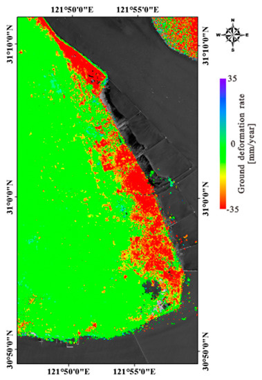The reclamation area is located in the eastern part of Shanghai. Under the influence of land reclamation and earth filling, obvious land subsidence will inevitably occur. In this paper, the Small Baseline Subsets (SBAS) [42] technique is used to obtain the land subsidence data of the study area.