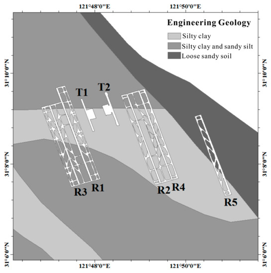 We used the engineering geological map of Pudong International Airport for analysis. The western region of the airport is composed of natural sediments, distributed sandy silt, and silty clay [29,30]. The eastern part of the airport is an artificial foundation, which is filled with loose sandy soil (Figure 7). Comparing with the coherence false color image, we can see that the eastern part of the airport is the area with low coherence coefficient. The engineering geological conditions in the reclamation area are the main factors affecting the time-related coherence. While discussing the time-incoherent model of the reclamation, we should discuss it separately according to different engineering geological conditions.