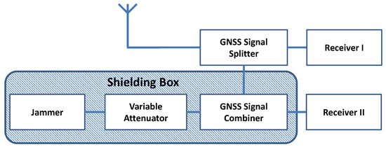20], the performance of a broad range of consumer grade GPS receivers under the interference of a low cost PPD is analyzed. The test was carried out for a static scenario within a confined space, where the performance of the receiver in terms of positioning accuracy and solution availability was analyzed for both the jamming-free and jamming scenarios of different intensities. Surprisingly, the tested receivers coped properly with the interference during the light jamming attack (with a jamming-to-signal ratio of 15 dB) with only a marginal influence on the quality of the position solution. However, during the severe jamming attack (jamming-to-noise-ratio of 25 dB), the availability of the position solution was reduced by more than