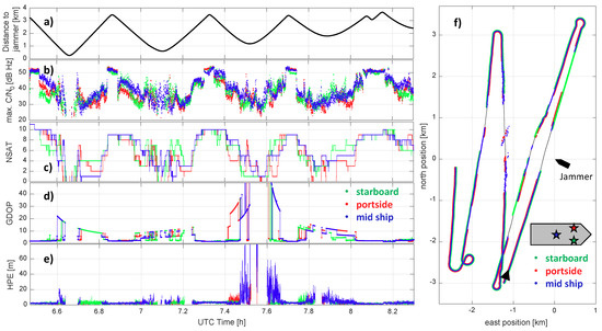 Figure 4), which was navigated around the tugboat AARON with a maximum speed of 8 knots and a distance to the jammer varying from ∼50 m to 4000 m. The vessel was equipped with three separate dual frequency GNSS receivers (type: Javad Delta, antenna type: navXperience 3G+C maritime), a FOG IMU (type Imar IMU FCAI, list of specifications at [