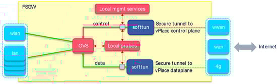 It is important to note that in our current design, each FSGW instance belongs to one specific vPlace, and hence only one local SDN-C and device manager can directly control each individual instance. The overall FSGW architecture is depicted in Figure 5.