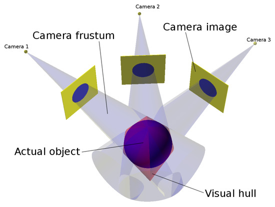 - Laurentini, A. The visual hull concept for silhouette-based image understanding. IEEE Trans. Pattern Anal. Mach. Intell. 1994, 16, 150–162. [Google Scholar] [CrossRef]