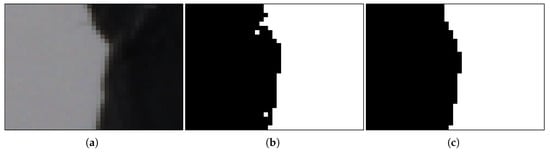 Steps of the image segmentation process: (a) original image; (b) segmented; and (c) smoothed.