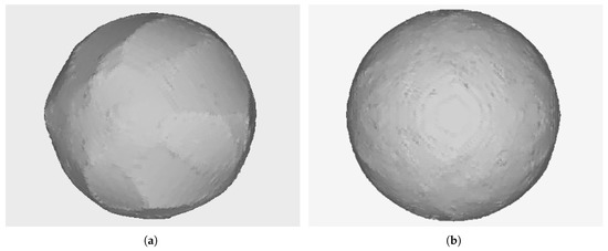 The final complete procedure gives rise to a very detailed mesh of triangles with more detail than needed according to the resolution of the silhouettes. Therefore, a simplification of that mesh is necessary. To delete small and degenerated triangles in the structure, a method adapted from [25,26] was employed. Decimation is a surface mesh simplification that involves reducing the number of faces (triangles in this case) used in a surface mesh while keeping the global shape, boundaries, and volume preserved in the highest possible degree.