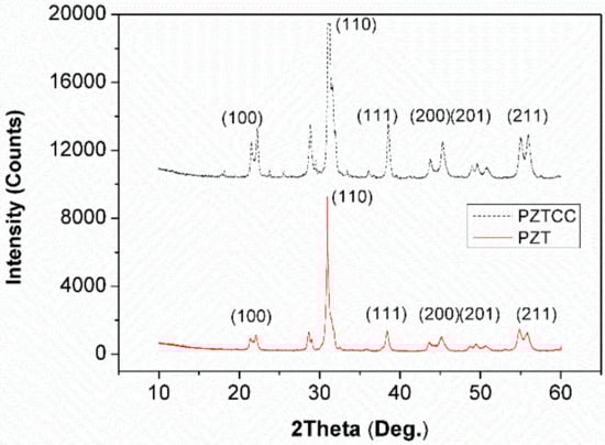 Figure 3 demonstrates the crystalline structures of PZT and PZTCC composite.