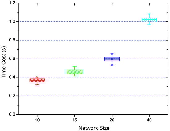 The time cost to conduct our algorithms in scenarios with different network sizes.