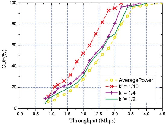 The CDF of throughput under different , where stands for the ratio of representative links to the total number of links.