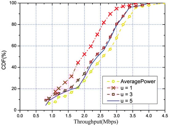 The CDF of throughput under different u, where u denotes the number of channels selected to perform the measurement in every representative link.