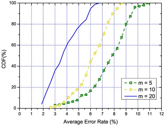 The CDF of the estimated error rate for different numbers of measurement.