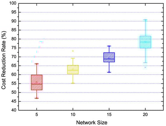 The cost reduction by measurement scheduling under different network sizes.