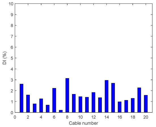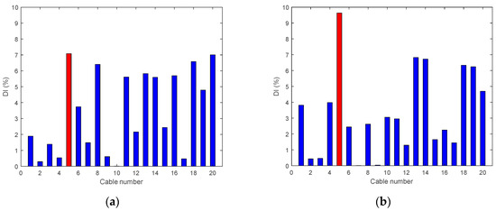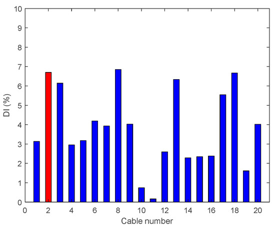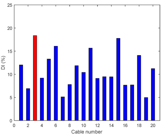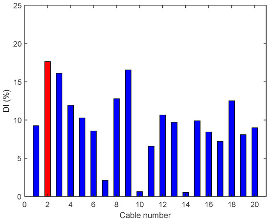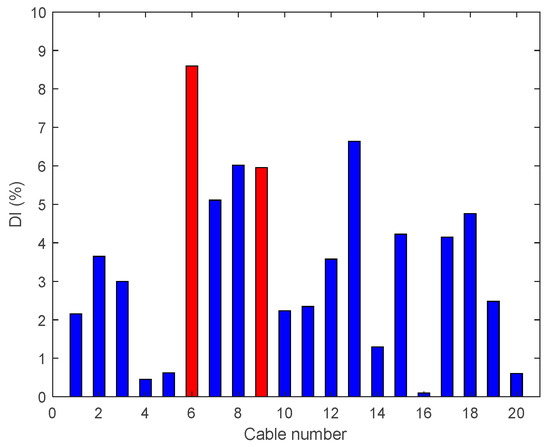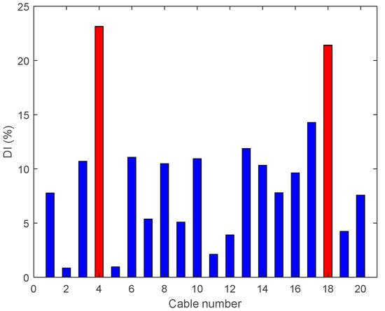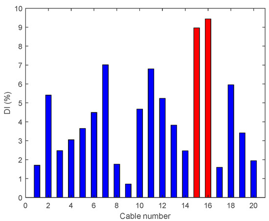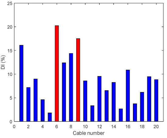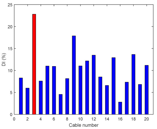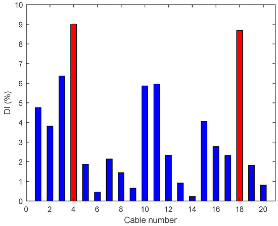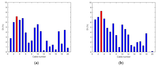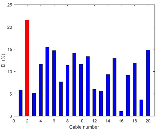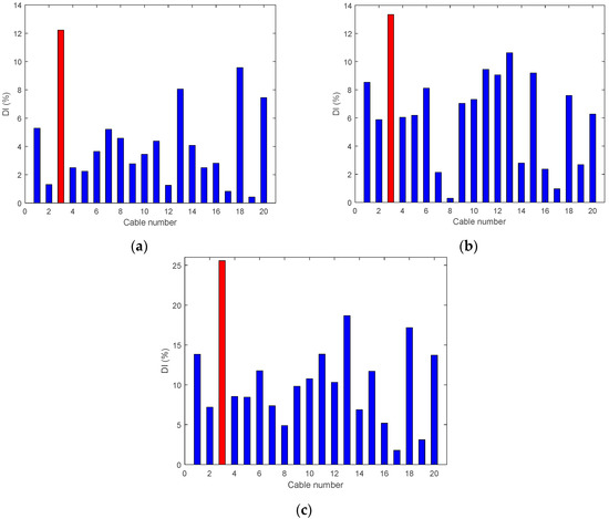 - Finally, the damage indices are calculated using Equations (10)–(12) for each damage scenario.