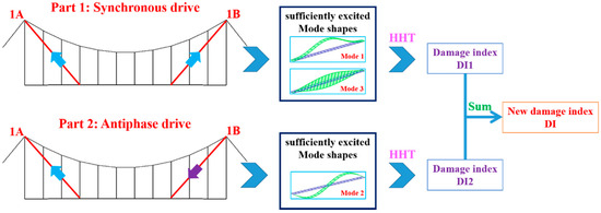 - The active cable drive is an effective way to excite the suspension bridge. Combined with Hilbert–Huang transform (HHT), a damage index () is constructed for damage detection of suspension bridge hangers. The proposed damage index () showed promising damage detection capability.