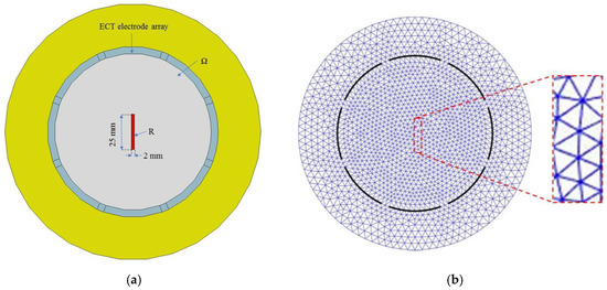 A new permittivity distribution is then estimated by solving the inverse problem, and this process is repeated until the ratio (ϵ) of the norm of e and the norm of Cm remains greater than a preset error threshold (0.05%). A detailed formulation of the ECT forward and inverse problems can be found in Gupta and Loh [31] and Soleimani and Lionheart [19].