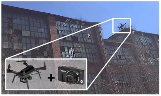 Recent advances in image sensors and sensing platforms have been achieved, enabling automated or semi-automated vision-based visual inspection [3,4,5,6,7,8,9,10,11]. Incorporating vision sensors onto aerial sensing platforms will alleviate the spatial and temporal limitations that are typically associated with manual inspection in the case of large-scale buildings [12,13,14,15,16,17,18,19]. For example, unmanned aerial vehicles (UAVs) can collect a large volume of high-resolution images to cover the entire area of buildings in an efficient manner. With automated methods to use and process this data, computer-aided inspection can overcome time-consuming and risky human-based inspection for the building façades.