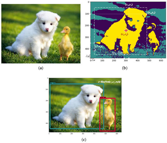 (a) Original image; (b) Anchor box defining; (c) Object recognition.