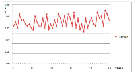 Contrast analysis of 50 sets of 439 μm distance images, the results shown in the Figure 10, the average contrast is 0.81. This far exceeds the traditional capacitive fingerprint identification method. With a contrast ratio of 0.59 at 300 μm, the detection distance is increased by 46% compared to the conventional capacitive fingerprint recognition method, with better contrast.