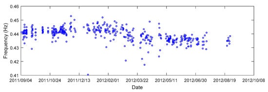 Identified modal frequencies of the 1st vertical mode during the monitoring period.