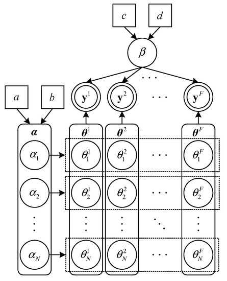 where denotes the inverse variance (precision) of , , and . As shown in Figure 3, are common hyperparameters of . In the second layer of the prior model, we impose the following Gamma distribution on since Gamma distribution is conjugate to Gaussian distribution