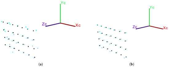 After being registered in the same reference frame, the squared 3D error of the point i is evaluated by the square of the Euclidean distance between its ideal coordinates and its estimated coordinates , as shows Equation (5).