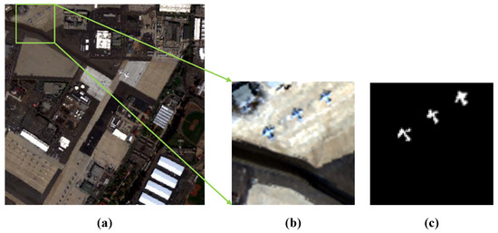 First Real-World Dataset. (a) Whole San Diego airport image dataset; (b) Upper left of the San Diego airport hyperspectral image; (c) Ground truth for the anomaly targets.