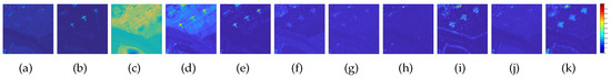 where denotes the norm of the i-th column of , is the segmentation threshold, and, if , is determined as the anomaly pixel; otherwise, is labeled as the background.