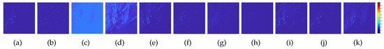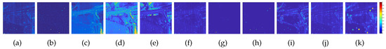 The second real-world dataset is the HYDICE hyperspectral image named Urban [69]. The data has a spectral resolution of 10 nm, a spectral range of nm, and a spatial resolution of m2, and there are pixels in the entire set of data, with 210 spectral bands, as shown in Figure 6a.