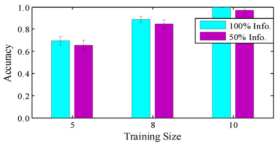 Impact of training strategy. In the experiments, we collected a total of 6000 gesture segments from all 10 volunteers. Specifically, we use 50% of the records of all 10 volunteers to train the CNN model, and the remaining 50% of the records to test the performance. To further discuss the impact of the training strategy, we train the CNN model with decreased numbers of users and numbers of training samples per user. In Figure 11, we firstly train the model with all records and test the performance using the data of one user, which obtains the highest accuracy. Our training method uses fewer training samples but achieves considerable results, with an accuracy of 98%. We also decrease the number of users from 10 to 5, and use the remainder as the test groups. A significant drop is observed in the accuracy from 98% to 65%, while the differences between diverse training sample sizes is not significant. So adding participant diversity really matters for a practical system.