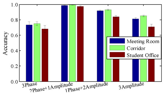 Impact of raw material. To evaluate the efficiency of image construction, we perform contrast experiment by applying various combinations of amplitude and relative phases. Please note that the depth of the radio image is fixed at 3, since that is a requirement of the current CNN model. We leave ‘higher-dimensional tensor processing’ for future work. Figure 12 shows that amplitude or relative phase information alone are not sufficient to detect slight finger gestures. Based on observation, we extract sensitive amplitudes from one antenna and two relative phases from all three antenna pairs.