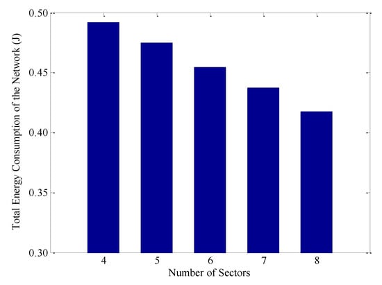 Total energy consumption under different numbers of sectors in a round of data collection.