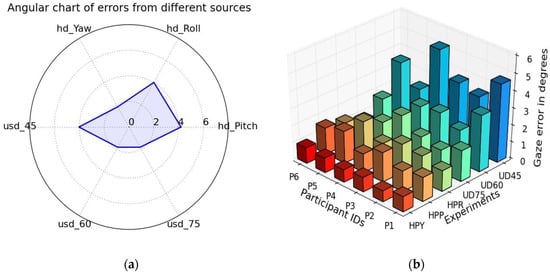 Angular charts are implemented here to compare multiple variables from a number of our gaze experiments quantitatively, as shown in (Figure15a), and the aim is to make it easy to identify which experimental variables result in higher errors.