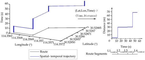 The light sensor is more complex than other sensors in that the intensity of light varies greatly across time and climate. The most accurate match result can be obtained when the light condition of is similar with the . Hence, this paper introduces a light similarity method which considers the continuity of data. In this method, the intensities of light under different light conditions are processed according to Section 3.3.2.1. The light segment result can be obtained as , denotes the amount of light condition, such as day, night, sunny day, cloudy day, etc. is the section when . Then, we calculate the of real-time data with according to Equation (13) in times. The number of successful match results in different light conditions is represented as . If and , we regard the as the most similar light condition of real-time data. Finally, the segment route whose light condition is is selected.