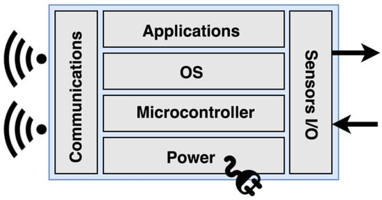 In general terms, these devices may be limited by their size, by their data storage, by their energy source, by their computing capacity, or by their communication capacity. Therefore, the tasks carried out by these devices are usually highly optimized. The main elements (software and hardware) present in an IoT device are described in Figure 1.