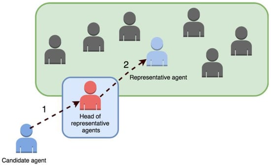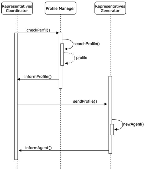 The diagram of Figure 12 shows the relationship between the three agents of the sub-organization for the management of representative agents. Specifically, the process of consulting and sending the profile that the new representative agent generated will have is shown. In this way, agents outside the organization are prevented from injecting malicious external codes into the organization. All the agents included in the system are registered by the system itself.
