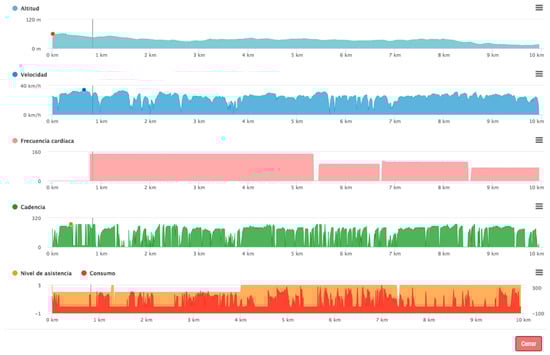 As a final result of the case study, an open and scalable system has been designed, which is capable of obtaining all the data produced while performing an activity on an electric bicycle in real time. It is a system capable of incorporating new sensors to add new accurate information or to replace the sensors with different ones, without the need to reprogram the system. In Figure 19, the data obtained by a bicycle after being stored in the central server, where it will later be analyzed in search of possible optimizations or on which real-time monitoring can be performed in search of security elements such as falls, accidents, or abnormal driving behavior, can be viewed.