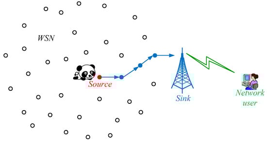 Wireless sensor networks (WSNs) consist of quite a number of tiny, green and smart nodes. In general, these nodes can automatically compose a connected network, though each node can directly communicate with only several neighbors which can greatly save the energy of the nodes. Based on the properties of economy and flexibility, WSNs have been extensively employed in military surveillance, industrial control, disaster management, forest fire detection and traffic monitoring [,,]. In general, the nodes that find the target are defined as the source nodes and they are responsible for reporting the target-related information to the sink node. A huge challenge is how to securely deliver the information in a relay manner without leaking the location privacy of the monitored target.