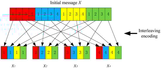 Having got the sub-messages, , of by an interleaving encoder, we construct the shares of based on Equation (1) as follows: