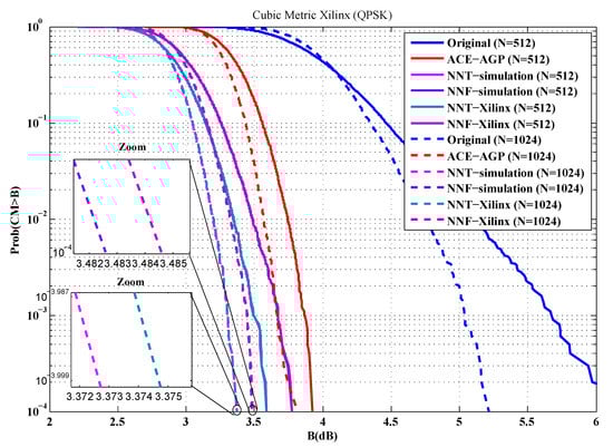 Cubic metric reduction in the case of QPSK modulation (Xilinx FPGA).