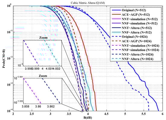 The conventional metric used to measure power fluctuations in an OFDM signal is Peak-to-Average Power Ratio (PAPR). However, the latter does not take into account the distortion induced by HPA. For this reason, the Third Generation Partnership Project (3GPP) proposed the cubic metric [,]. It is mathematically defined as follows: